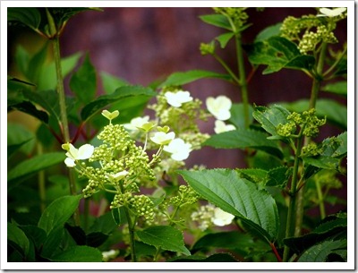 Yesterday, I took pictures of bought hydrangeas, grown by some clever person in hothouse conditions. Here is one of my own, out in the earth:
